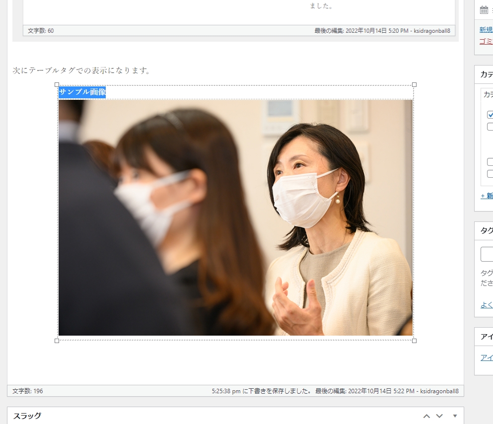 編集画面(ビジュアルタブ)では、左に配置されています。テキストタブを見るとタグが反映されていない現象が起きています。お手数をおかけします。ご確認よろしくお願いします。